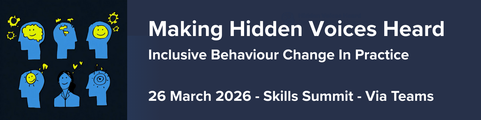 Making Hidden Voices Heard is a fast-paced, practical Skills Summit forĀ everyone designing, commissioning or delivering behaviour change in the real world but committed to shifting beyond awareness and putting inclusivity at the centre.Ā